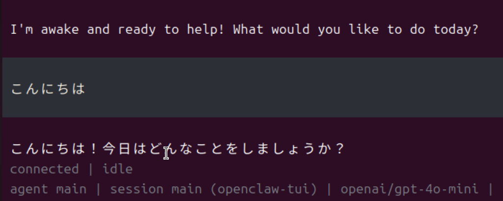 openclawのエージェントが起動します。