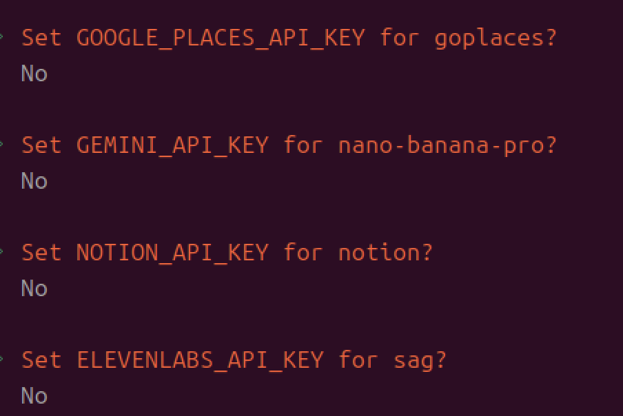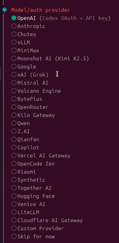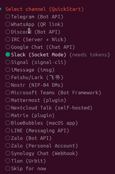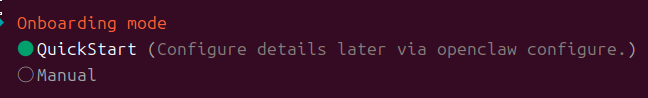 QuickStartではOpenClawを使うにあたって最低限必要な設定を対話形式で行うことができます。
