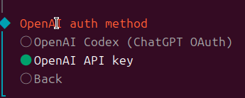 auth methodは、「OpenAI API key」を選択します。