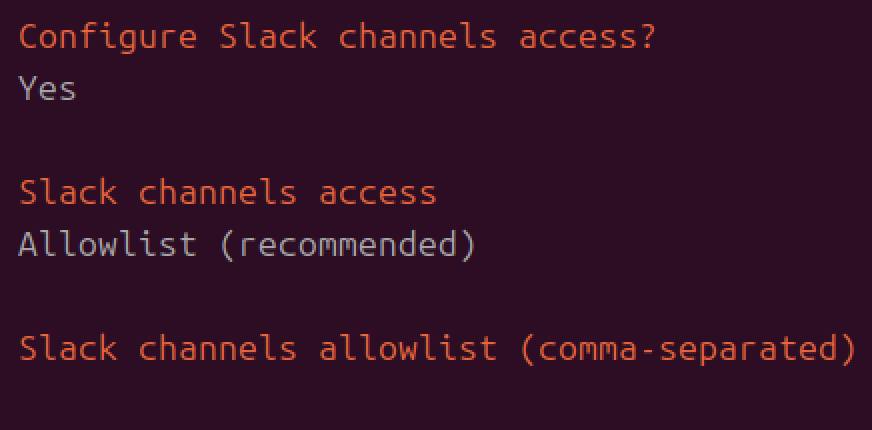 Slack channels accessで「Allowlist」を選択します。
