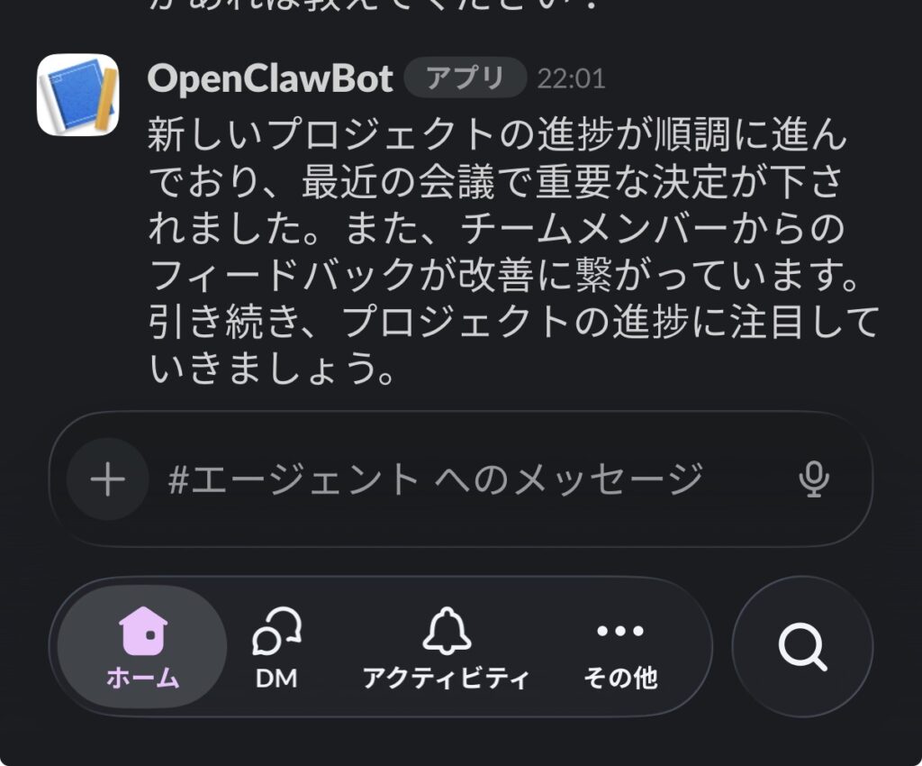 まずはSlackでこのような返答が返ってきます。