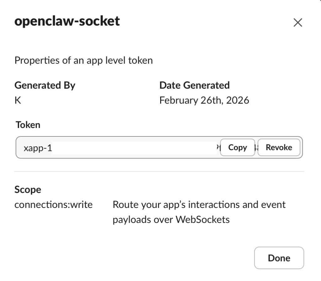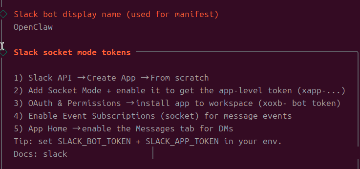 Slack bot display nameは何でも良いので、デフォルトのOpenClawを指定します。