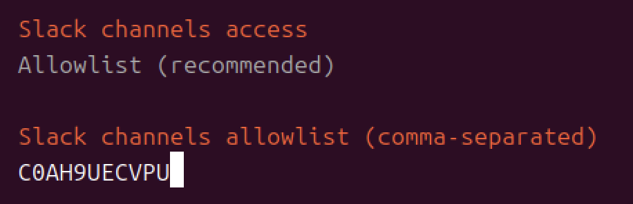 Slack channels allowlistでチャネルIDを入力します。
