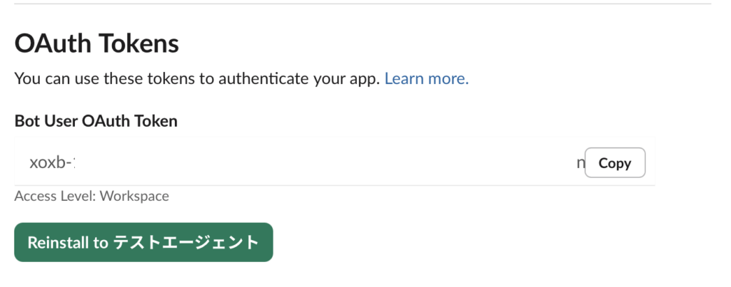 Slack bot tokenを貼り付けます。